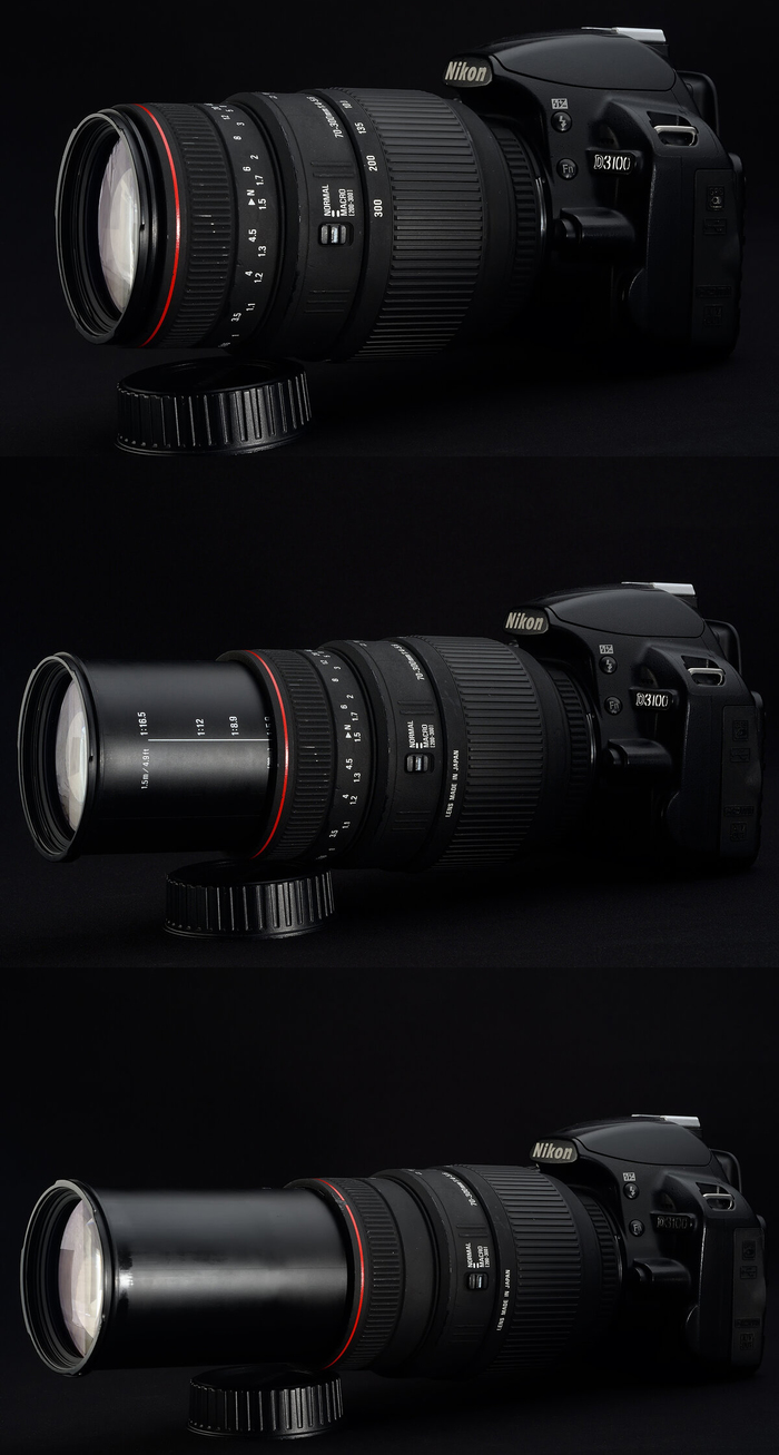 В положении 70мм объектив более менее компактный даже =) Бленду можно надевать обратной стороной для удобной транспортировки.
