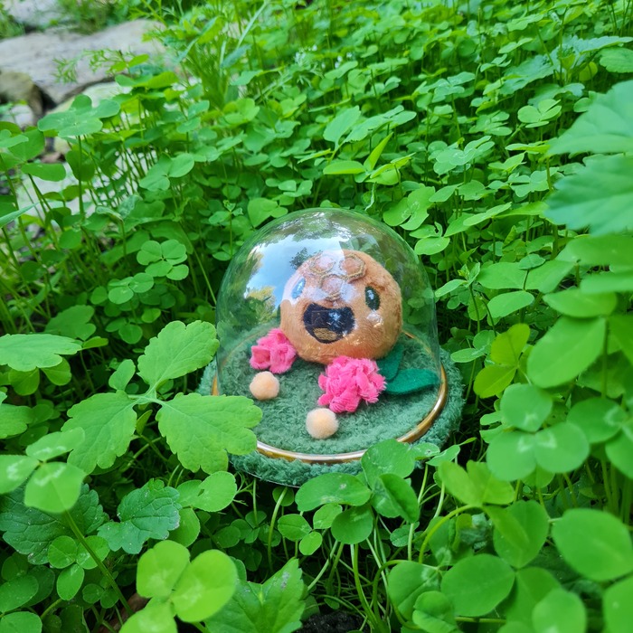 Решила оформить каждому слайму купольный домик. Самого слаймика там крепить не буду, а вот декор буду сажать на нитки и текстильный клей.