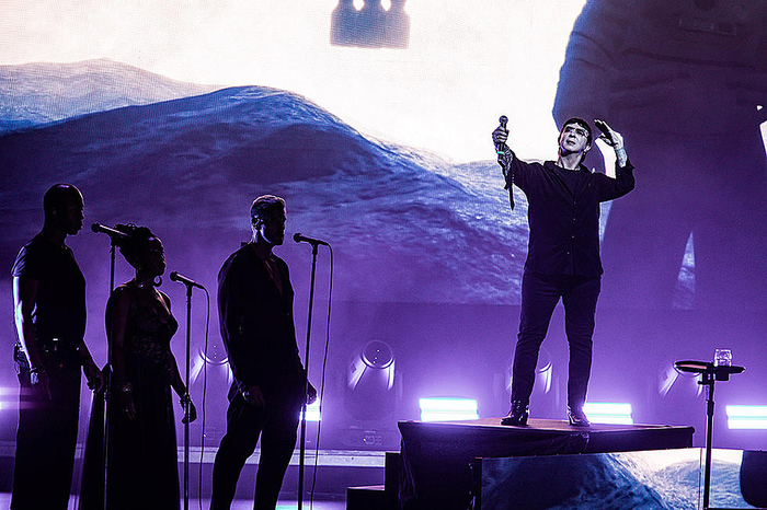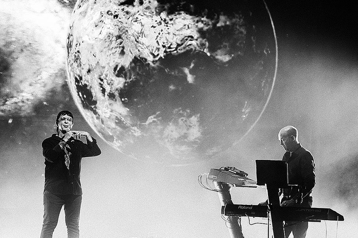 Выйдя к микрофону, господин Алмонд привычно завладел всем сценическим пространством, буквально расчищенным под него. Клавишник, как и положено в электро-поп дуэтах, был отодвинут в тень на заднем плане, а бэк-вокал и саксофониста разнесли по сторонам. Экран позади сцены транслировал видеоряд, удачно синхронизованный с музыкой.