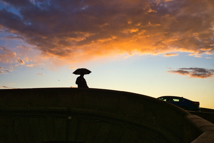 На Прачечном мосту. Особенно если прийти туда на закате в конце мая, когда только что закончился дождь, а с Финского залива ещё идут облака. Но уже уходят.