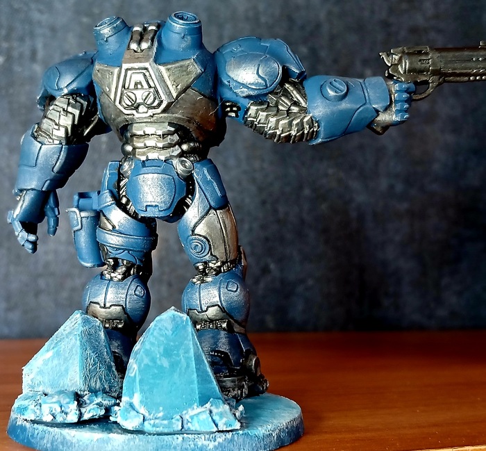 StarCraft давно занял свою нишу в сердцах людей. Подарила такого терра марина на НГ своему товарищу. Была проинформирована, что это Рейнор и стыдно не знать. Титусов всяких знаю (За Императора!)а Джима не знаю совсем. Покрашен был прри помощи аерографа и красок Valejo electric blue, jim scale metall, jim scale gold, citadel necron dry, . Эффект мороза valejo winter.