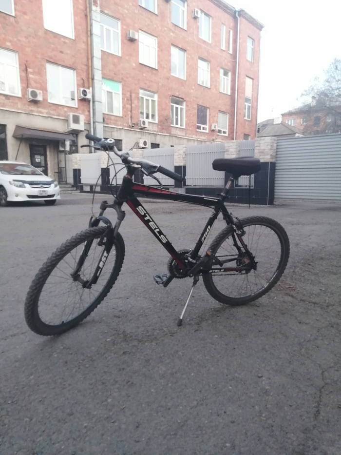но для начала про хорошее, самым навороченным из коробки был Стелс навигатор 670 21 рама 26 колёса дисковый тормоза обалденная резина, швальба Land Cruiser, она охоте позиционируется как вседорожная но очень накатистая, особенно разница по накату ощущается по грунтовке иногда ловил себя на мысли что велосипед сам едет , сами диски прекрасные 2.000 чего-то там, забыл как правильно называются , навеска достаточно высокого уровня. рама алюминиевая гидроформинг. единственное минус это вес, велосипед весит 16 мать его килограмм это много. велосипед хороший но старый по-моему он 2015 модельного года. Претензии никаких велосипед прекрасен. Вот он (да а Я сфотографировал свою же фотографию на другом телефоне . Да хрен его знает почему после передачи по Bluetooth Пикабу не хочет её грузить)