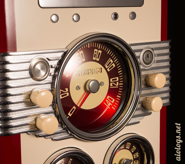Корпус был изготовлен на заказ для одного эксцентричного клиента. После рассмотрения множества вариантов было решено делать проект, стилизованный под классические автомобили. Поначалу дизайн планировался более лаконичным, но заказчик был из тех, кто хочет всё и сразу. Именно поэтому на боковых стенках корпуса появились сначала антикварный шильдик компании Hudson, затем стрелочные приборы, а потом и вовсе радиоприёмник.