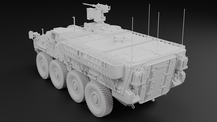Данный бронетранспортер был разработан предприятием Canada General Dynamics Land Systems GDLS. Силовой агрегат не самый мощный среди конкурентов — всего 350 лошадей, тем не менее, его хватает, чтобы разогнать машину до 100 км/час, максимальный запас хода — 550 км в эконом-режиме.