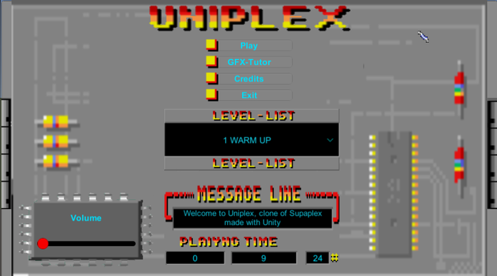 Возможно, проект так и останется незавершенным, потому что ощущается нехватка времени, т.к. Unity - это хобби, которым занимаюсь на работе, когда находится свободная минутка. Также мне пришла идея сделать игру, которая очень похожа на Supaplex и мой Uniplex, но с другими блоками, другим сеттингом, да все другим, но со схожими механиками. Получается, что у меня уже есть какой-никакой прототип.