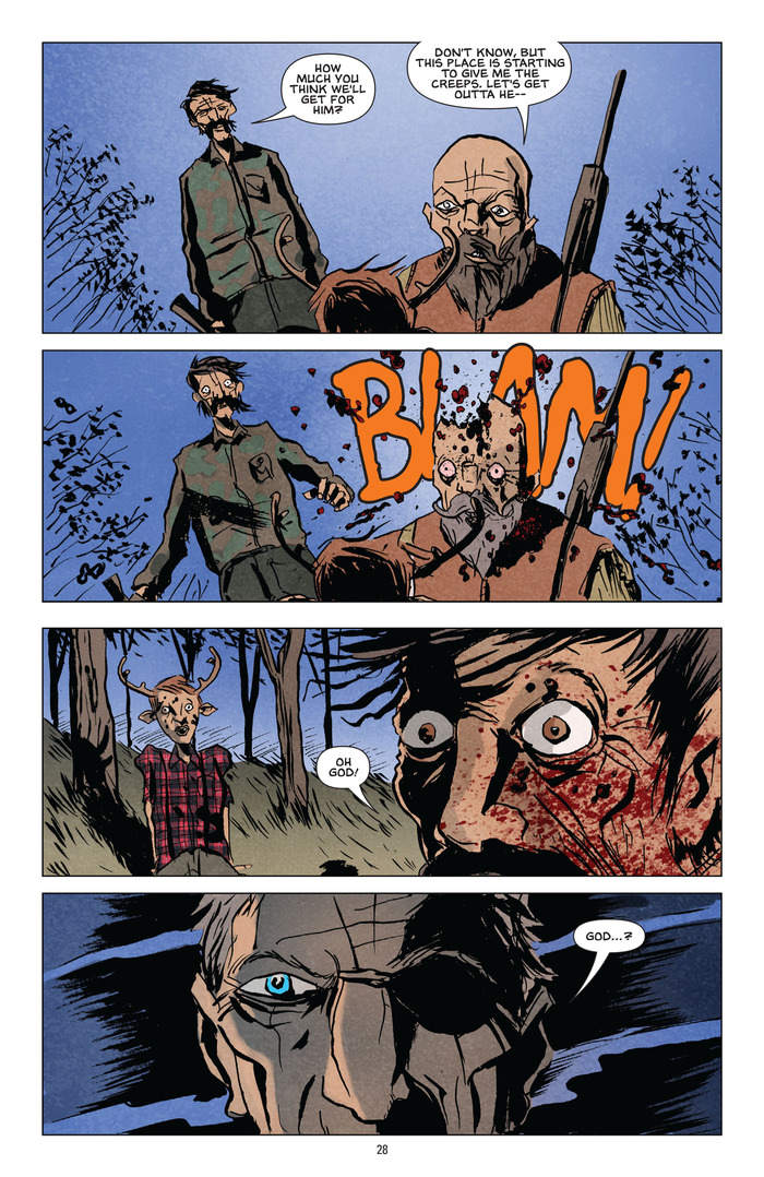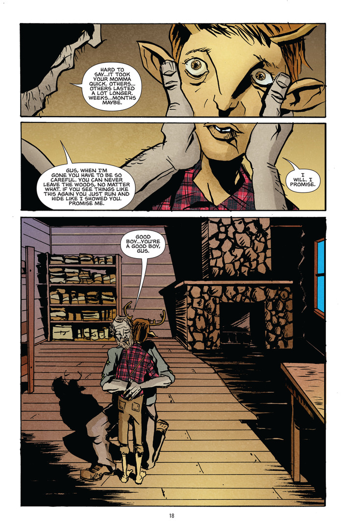 Главный герой – Гас, мальчик с оленьими рогами, один из этих самых гибридов. Живет со своим отцом в заповеднике где-то в Небраске и не знает забот, помогает по хозяйству и стреляет из рогатки по пугалу на огороде. О мире за забором знает только из рассказов от отца, и только то что за изгородью ждут его лишь ад и страдания. Про свою мать он тоже знает лишь из рассказов отца, умерла она еще, когда Гас был младенцем, могила ее находится на заднем дворе дома. Все нормально, пока чума не забирает и его отца. Теперь Гас совсем один, но не надолго, он встречает большого грозного мужчину – Джеппарда, бывшего хоккеиста и с болезненными чувствами к покойной жене, довольно типичный персонаж для авторских серий Лемира. С этого комикс по сути и начинается, это история взаимоотношений мальчика-гибрида и мужчины средних лет (может показаться что похоже на The Last of Us, но комикс выходил еще с 2009 по 2013ый, да и сюжет несколько про другое).