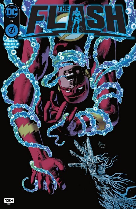 Сегодня начнётся новый том с комикса The Flash vol.6 #1 за ноябрь 2023 года, с историей от Саймона Сперриера и рисунком от Майка Деодато-младшего. С самого начала показывают пожилого скорохода. В разные периоды и в разных странах его звали Ахвехота Бегущий с Бурей, Вип Ураган, Кюгельмонстр, Ртуть, сейчас его зовут Макс Меркурий. И сейчас он намерен отправиться в путешествие по таймлайну с Бартом Алленом, Импульсом. Но что-то идёт не так, и вместо плавного преодоления временного барьера скороходы врезаются в него и их отбрасывает в исходную точку. Макс ещё и видит странное видение, бизона со светящимися глазами. И Макс почувствовал исходящую от сущности просьбу о помощи...а далеко оттуда сталкивается с трудностями Флэш (Уолли Уэст) – использование суперскорости сопровождается сильной болью, что сильно некстати в сражении с новым отрядом Гориллы Гродда. ВНЕЗАПНО появляется «Рывок Индиго» – кто-то, весьма неловко перемещающийся на суперскорости. И так же быстро исчезает, а затем исчезают и гориллы, собрав данные о «Рывке» и затолкав пару десятков полицейских в улетающие в неизвестность сферы. Перед тем, как уйти, Гродд бросает странную фразу. «Мои соболезнования, Флэш. Расставание с любимой это чистейшая боль».