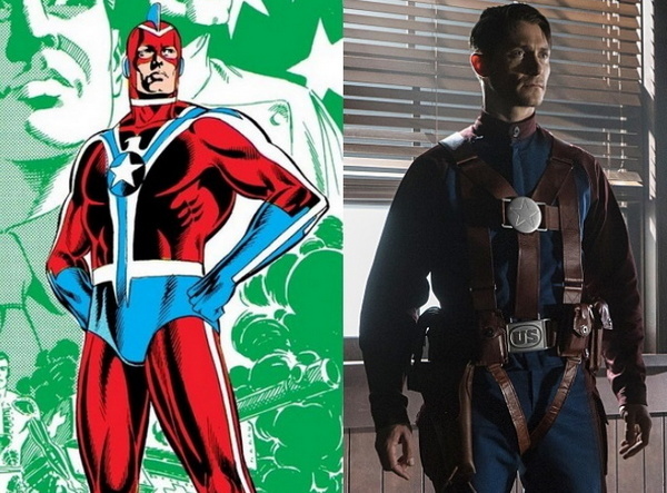 Кстати, о Хейвудах. В «Легендах» мельком показали деда Нейта, супергероя времён второй мировой войны по прозвищу «Командир Сталь». И вот от него меня прямо бомбануло. В комиксах Командир Сталь был чуть ли не первым киборгом вселенной DC – солдатом, которому после серьёзной травмы заменили кожу титановой тканью, мышцы инновационнными приводами, а кости сверхпрочным металлом. Вот он и стал супергероем. А впоследствии, с возрастом, он долбанулся на почве кибернетизации и насильственно превратил внука (не Нейта, брата Нейта) в киборга, будучи уверенным, что только это спасёт его от смертельной болезни (которой у внука не было). В Стреловселенной же Командир Сталь – тупо Капитан Америка (в довесок к двум Человекам-Факелам, Железному Человеку и Колоссу). Ездит на мотоцикле, стреляет из винтовки, разок даже подобие щита метнул. «Вы не понимаете, это не плагиат, а тонкая отсылка!». М-да...