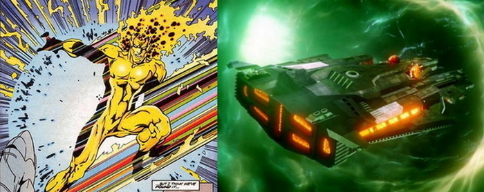 А завершит сегодняшнюю часть подборки персонаж, который изменился сильнее всех – Волнолёт! В комиксах это бывший учёный, который после несчастного случая “слился с таймлайном”, став существом, способным невозбранно перемещаться во времени в любом направлении и видеть прошлое и будущее любого предмета или существа. В Стреловселенной (а точнее, в сериале “Легенды Завтрашнего Дня”) это звездолёт. Довольно уютный, с несколькими каютами, центральным залом, складом и арсеналом, и лабораторией на борту. Волнолёт Фёдорович Крузенштерн прям.