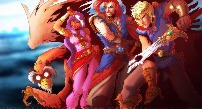 Несовершеннолетний, светловолосый, статный, смелый, благородный и вообще самый сладкий пирожок всея Мера – Рен. Брутальный, повидавший немало дерьма в жизни, бороздивший множество морей, заинтересованный только в своей выгоде, носитель шикарных усиков – Йоз. Официантка в одной из таверн, желающая спасти свои родные земли Андроуса от темных вод, прекрасная, хитрая, авантюристка, спортсменка, комсомолка и просто красавица – Тула. И постоянный спутник этой великолепной тройки – крылатая обезьяна Ниддлер.