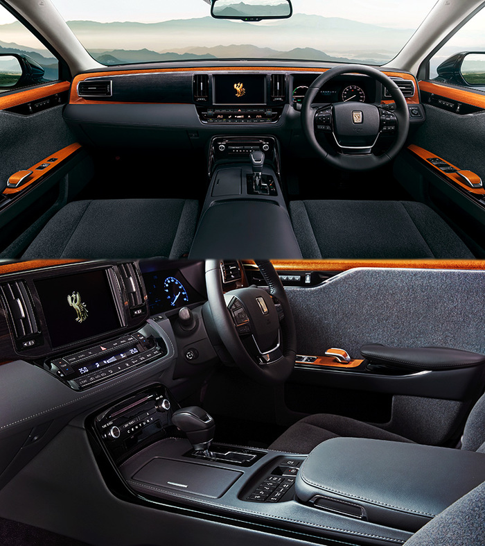 Багажник отделен от салона жесткой перегородкой со стеклом, а между спинками сидений в нее встроен небольшой холодильник. В передней части салона — без сюрпризов. Здесь виртуальные приборы, экран медиасистемы, отдельный пульт климат-контроля (с сенсорными кнопками и качающимися клавишами). Есть комплекс электронных ассистентов Toyota Safety Sense.