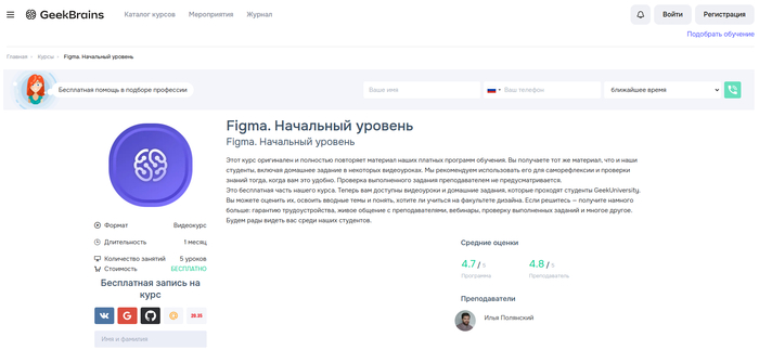 UX/UI-дизайнер от GeekBrains — живое общение с преподавателями и персональная обратная связь по проектным работам.