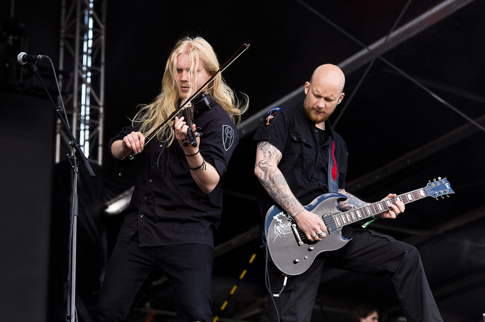 Prompt: epic viking metal, pagan metal, celtic folk metal, melodic death metal, powerful male vocals, fierce growling, heavy distorted guitars, melodic guitar leads, catchy guitar riffs, unforgettable guitar hooks, thunderous double bass drums, blast beats, war drums, ethnic instruments, fiddle, tin whistle, bagpipes, accordion, tribal drums, choir chants, orchestra, huge soundscapes, dense atmospheres, songs of battle, celtic mythology,