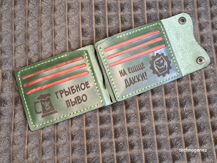 Картхолдер на 3 гнезда для карт + 2 универсальных кармана. Суммарно в него можно напихать 14 карт или нормальную котлету денег. Тут экспериментируем с разрисовкой в тему. Ссылка на ТГ изготовителя внизу.