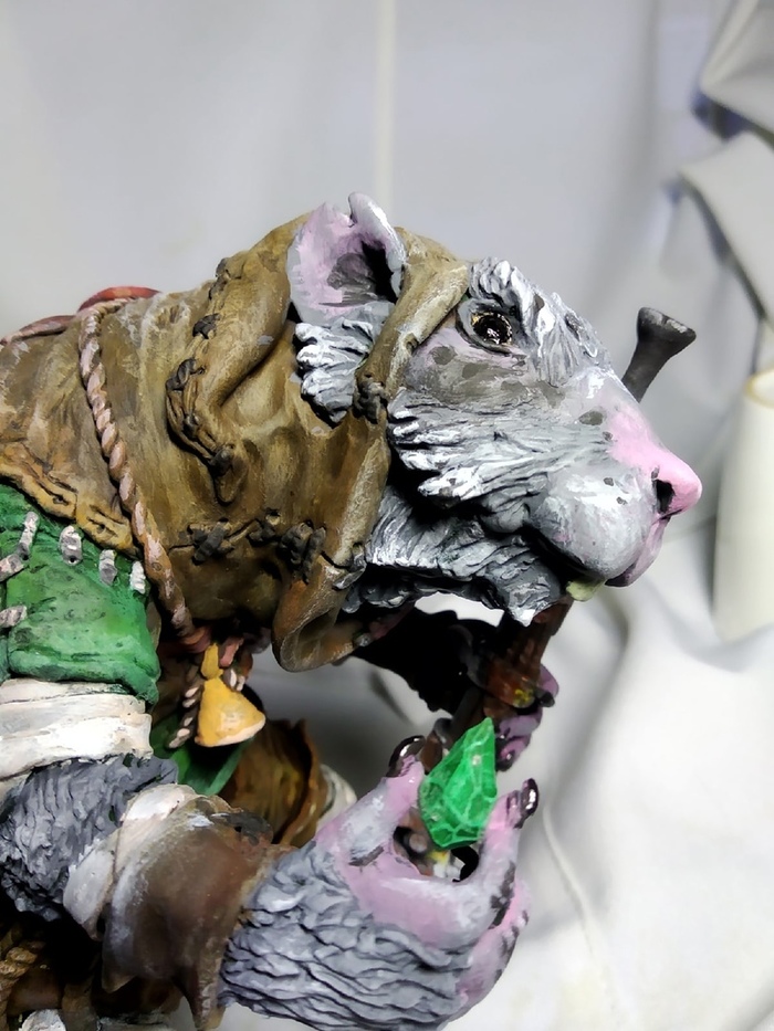 Начал с крысиной головы. Для экономии полимерной глины использовал фольгу как каркас, а вместо глазок сунул бусинки (не советую так делать, ибо потом конструкция начинает трескаться из за разнородности компонентов.