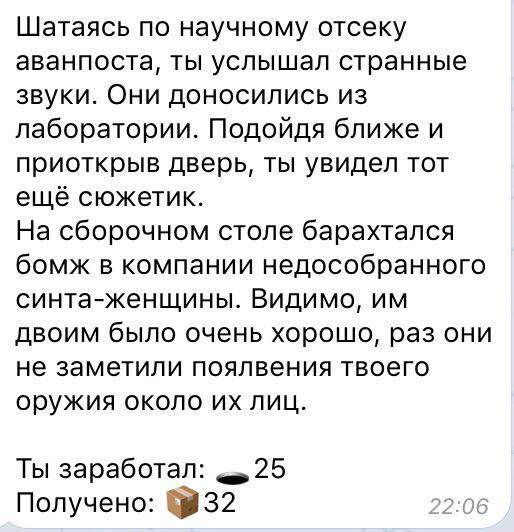 -в Пустоши теперь встречаются события, некоторые из них нужно исследовать совместно. Всё-таки, моя игра работает в мессенджере, а мессенджер сделан, чтобы общаться.
