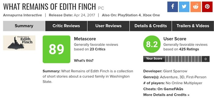 [Обзор видеоигры] What Remains of Edith Finch (2017)⁠⁠