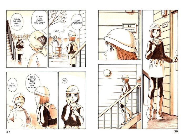 Девушка-андроид Альфа управляет маленьким кафе недалеко от Йокогамы, пока его владелец в отъезде. Клиентов, да и вообще людей, вокруг совсем мало. Заброшенный город постепенно отвоёвывает море, а дорога, по которой почти никто не ездит, порастает травой. Но Альфа не впадает в уныние, а бодро подметает крыльцо своего кафе, гоняет по окрестностям на мотороллере и не упускает случая перекинуться парой слов с любым встречным.