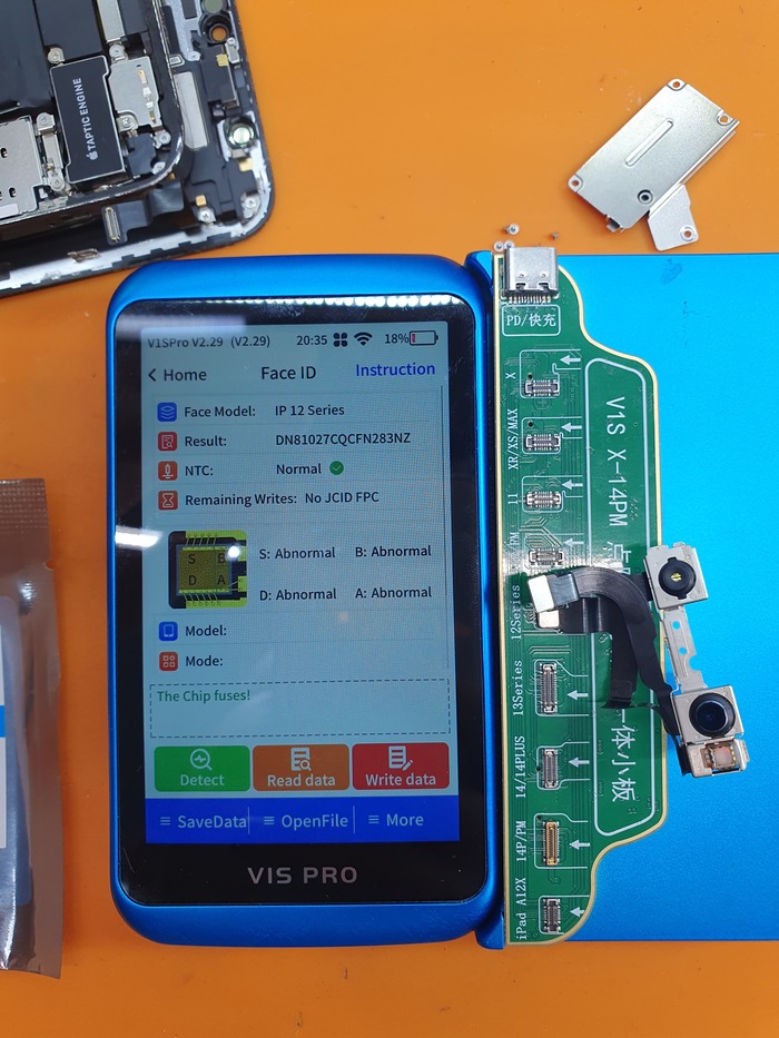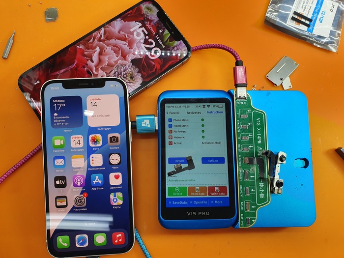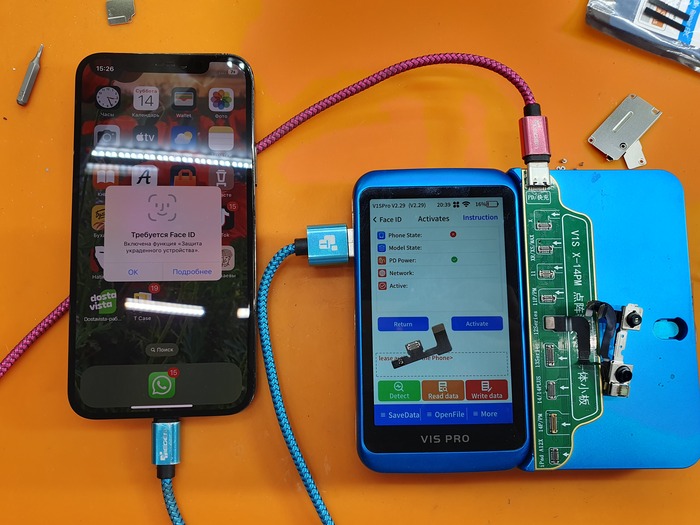 В данном случае по новому методу выжечь заблокированный транзистор не получится, так как включена защита от кражи и нужна личная будка владельца, чтобы доверить программатору управление телефоном, но вот незадача - фейс то не работает и как?