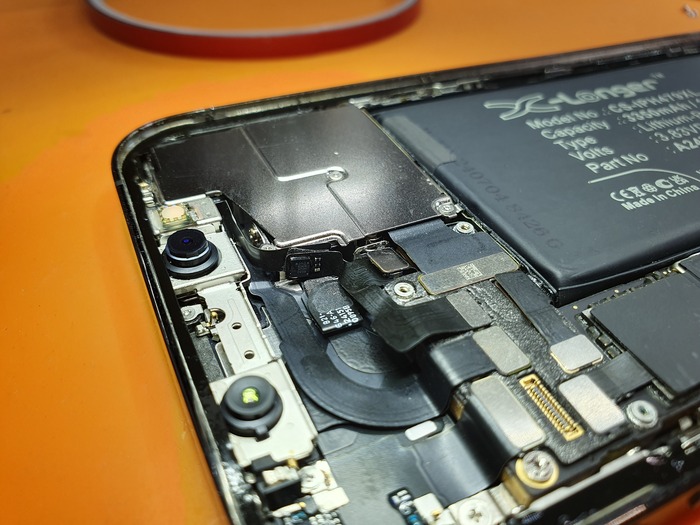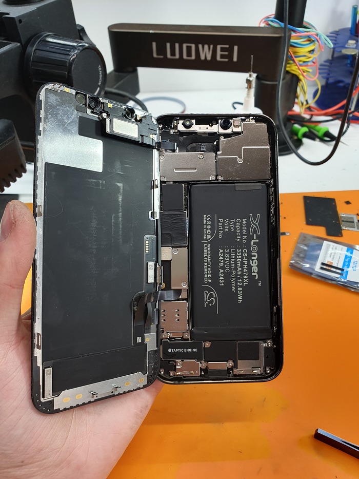 Стандартная ситуация - перестал работать верхний динамик на iPhone 12. Причина - обрыв обмотки динамика.