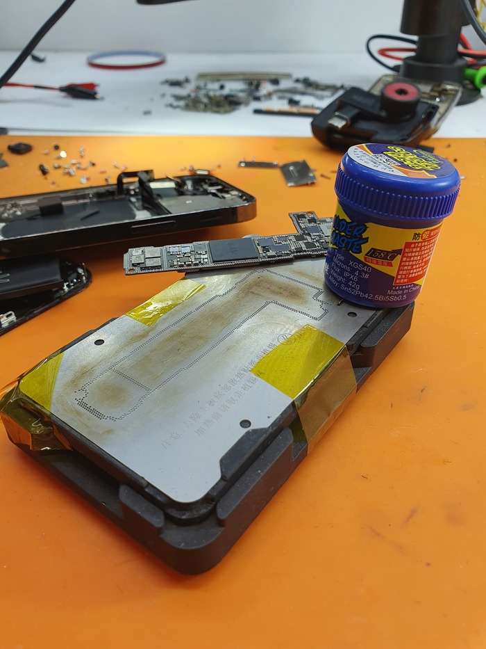 После запайки рамы телефон не включился...